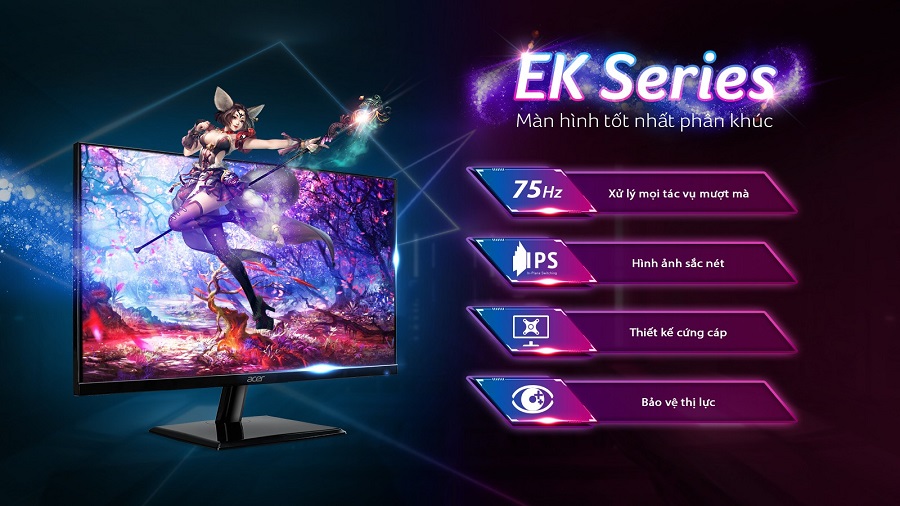 👉 Với sự kết hợp giữa thiết kế LED đen sang trọng, Full HD, IPS, 120Hz, kết nối VGA/HDMI, màn hình Acer EK241Y chính hãng là lựa chọn hoàn hảo cho học tập, làm việc và giải trí trong phân khúc màn hình 23.8 inch giá rẻ.
