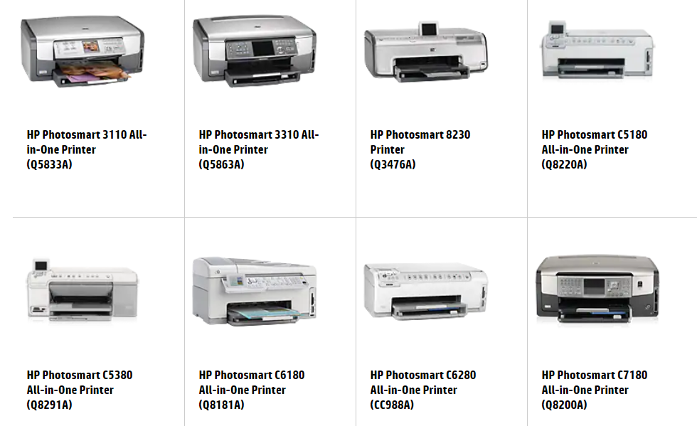 | HP Photosmart C6180 All-in-One Printer (Q8181A) | HP Photosmart 8230 Printer (Q3476A) |