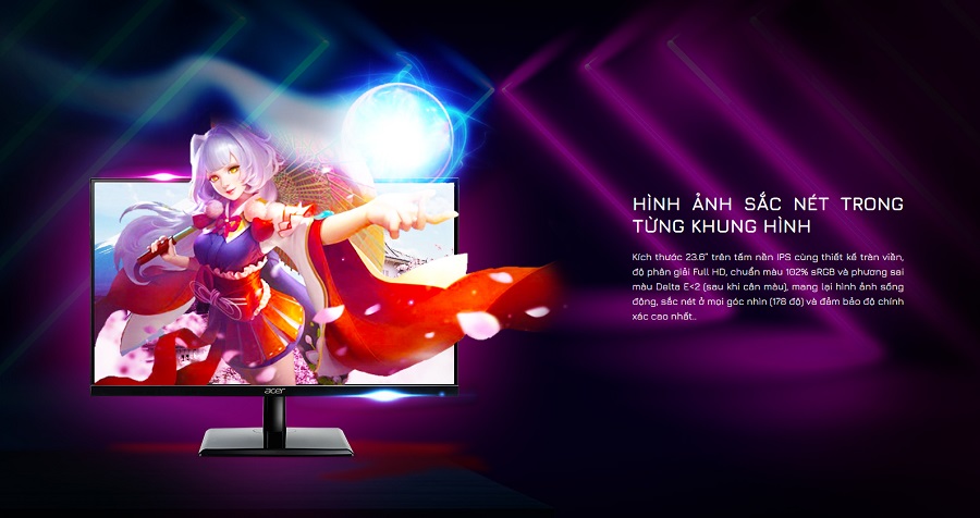 Ưu điểm: Full HD, IPS, 120Hz, thiết kế LED đen hiện đại, giá rẻ, chính hãng Acer.